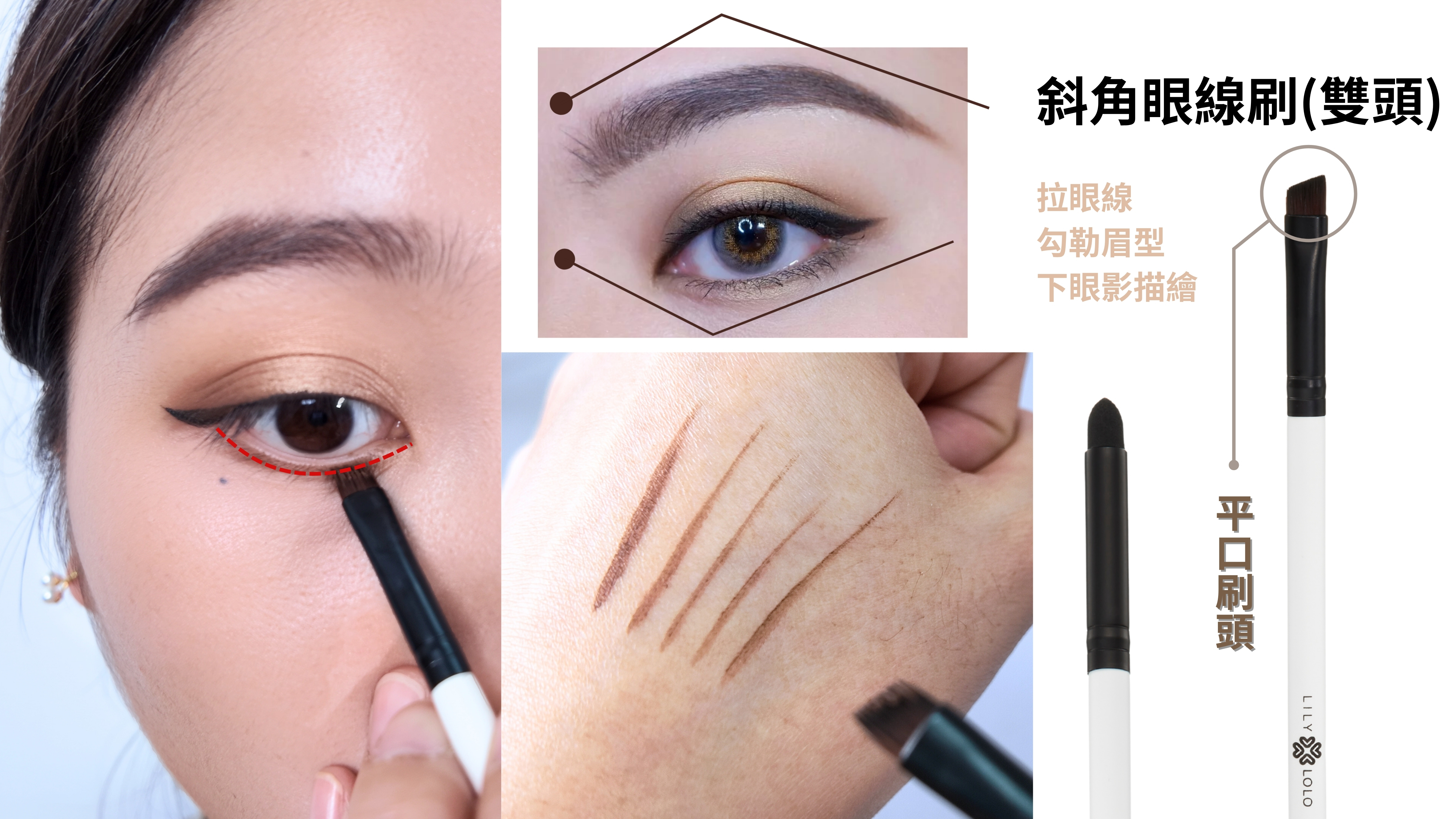 拉眼線、勾勒眉型時,必備一隻斜口的扁平刷!這種形狀的刷具可以平拉出較細緻的線條,可以選擇柔韌度較適中的刷毛,畫起來的線條感也會比較俐落、也較好勾勒想要的線條。