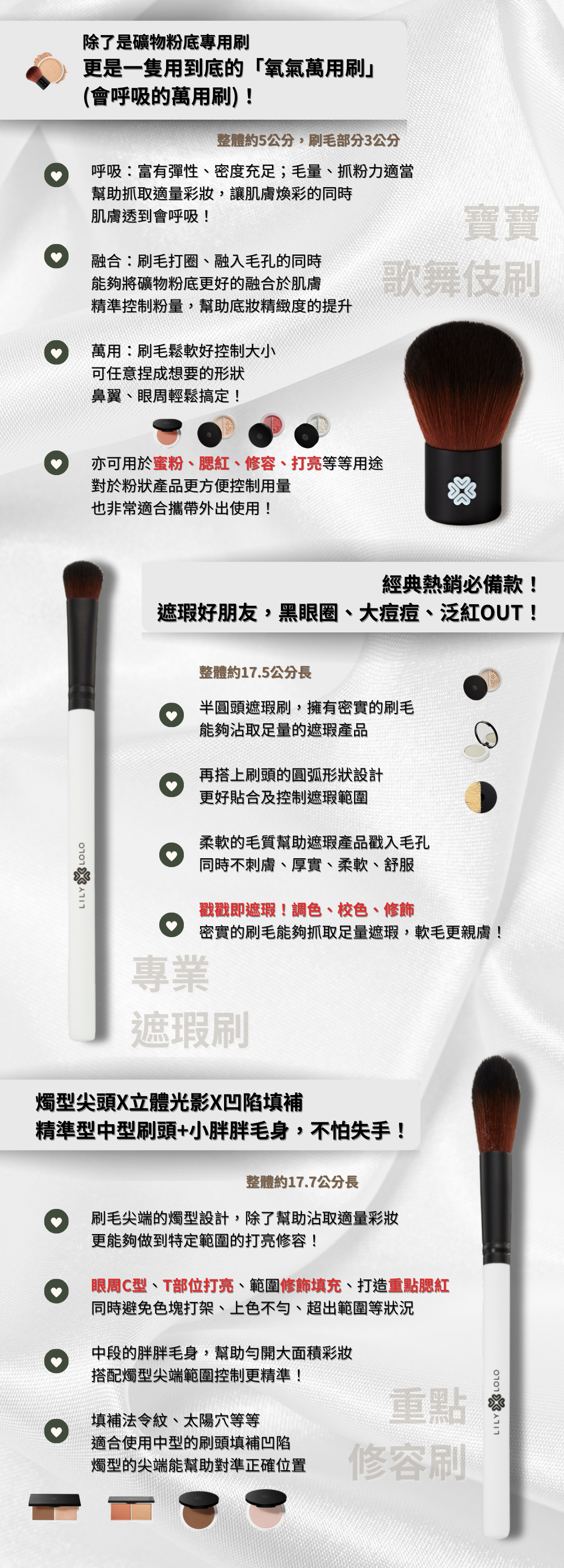 1.更均勻服貼:讓礦物粉底、餅狀、粉狀彩妝均勻服貼的刷在臉上