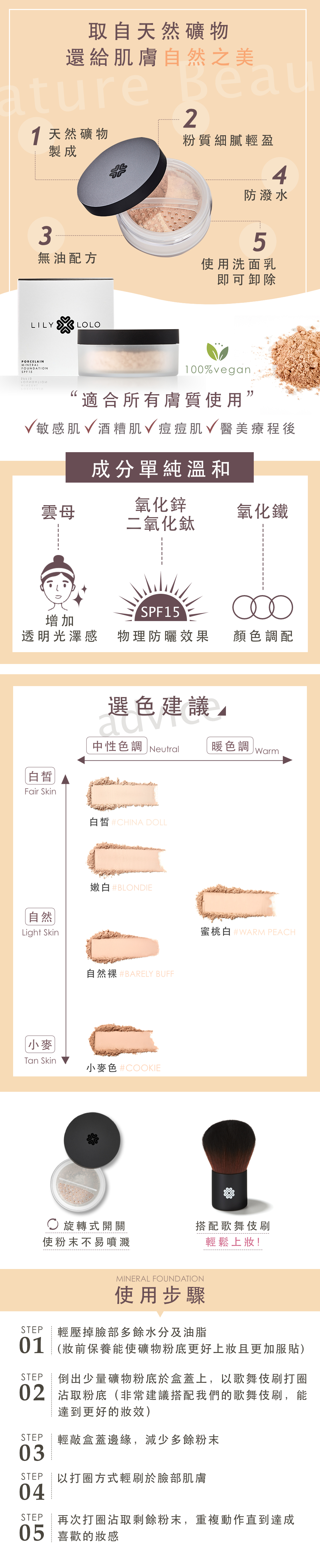 全成份:MICA, ZINC OXIDE [+/- CI 77891 (TITANIUM DIOXIDE), CI 77492 (IRON OXIDE), CI 77491 (IRON OXIDE), CI 77499 (IRON OXIDE)],Vegan Friendly