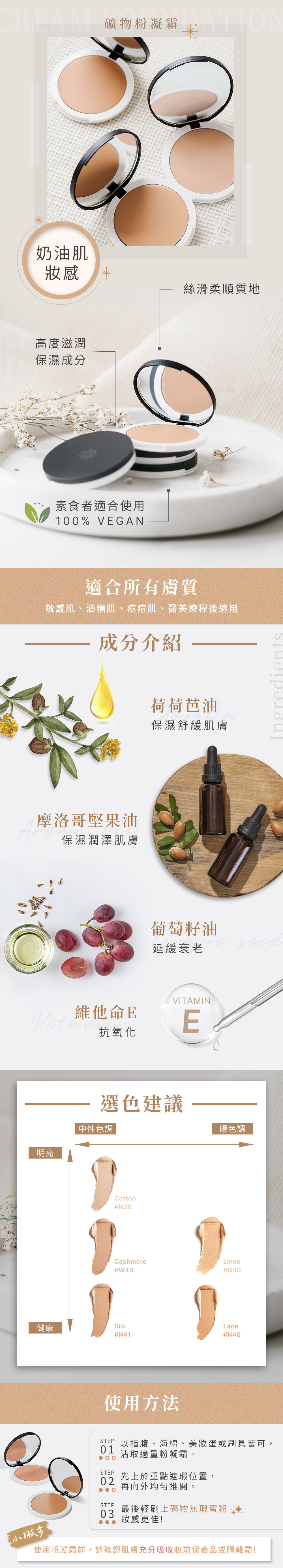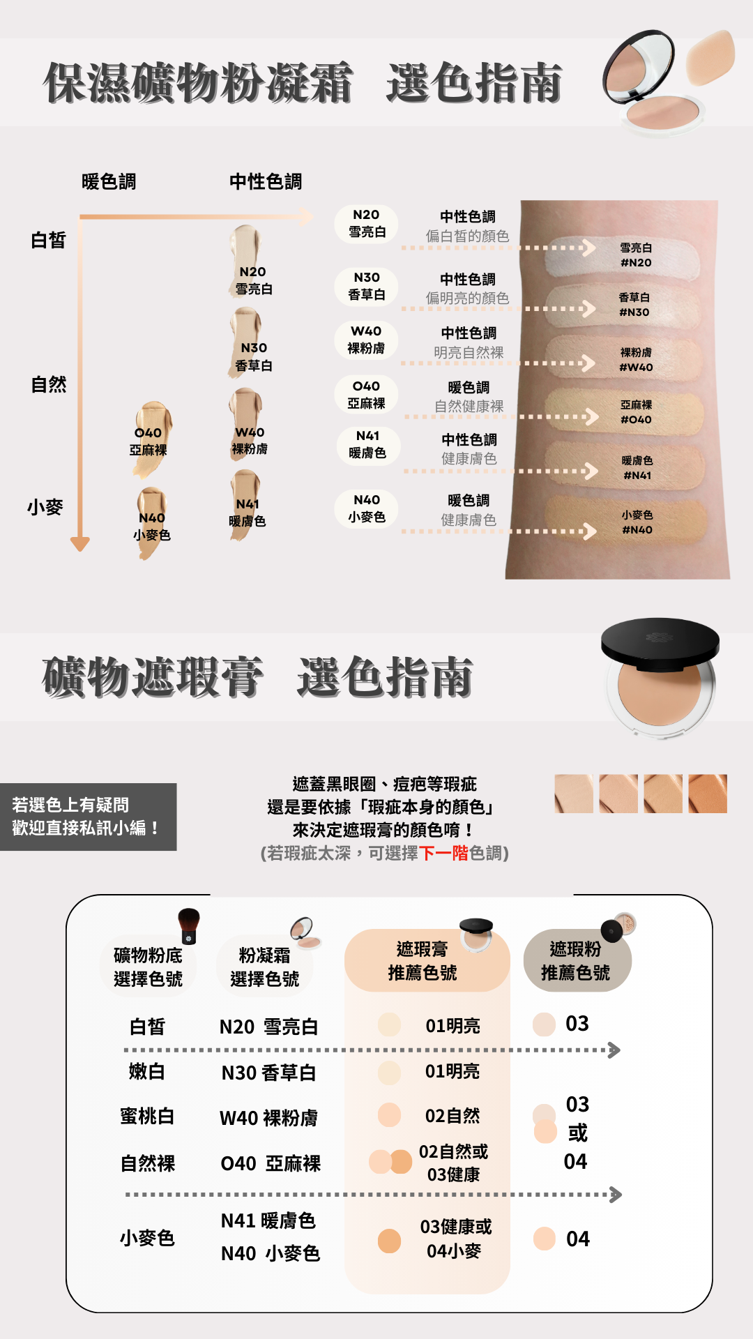 自然明亮(建議一般膚色使用):Cashmere #W40(中性色調)Linen #O40(暖調)