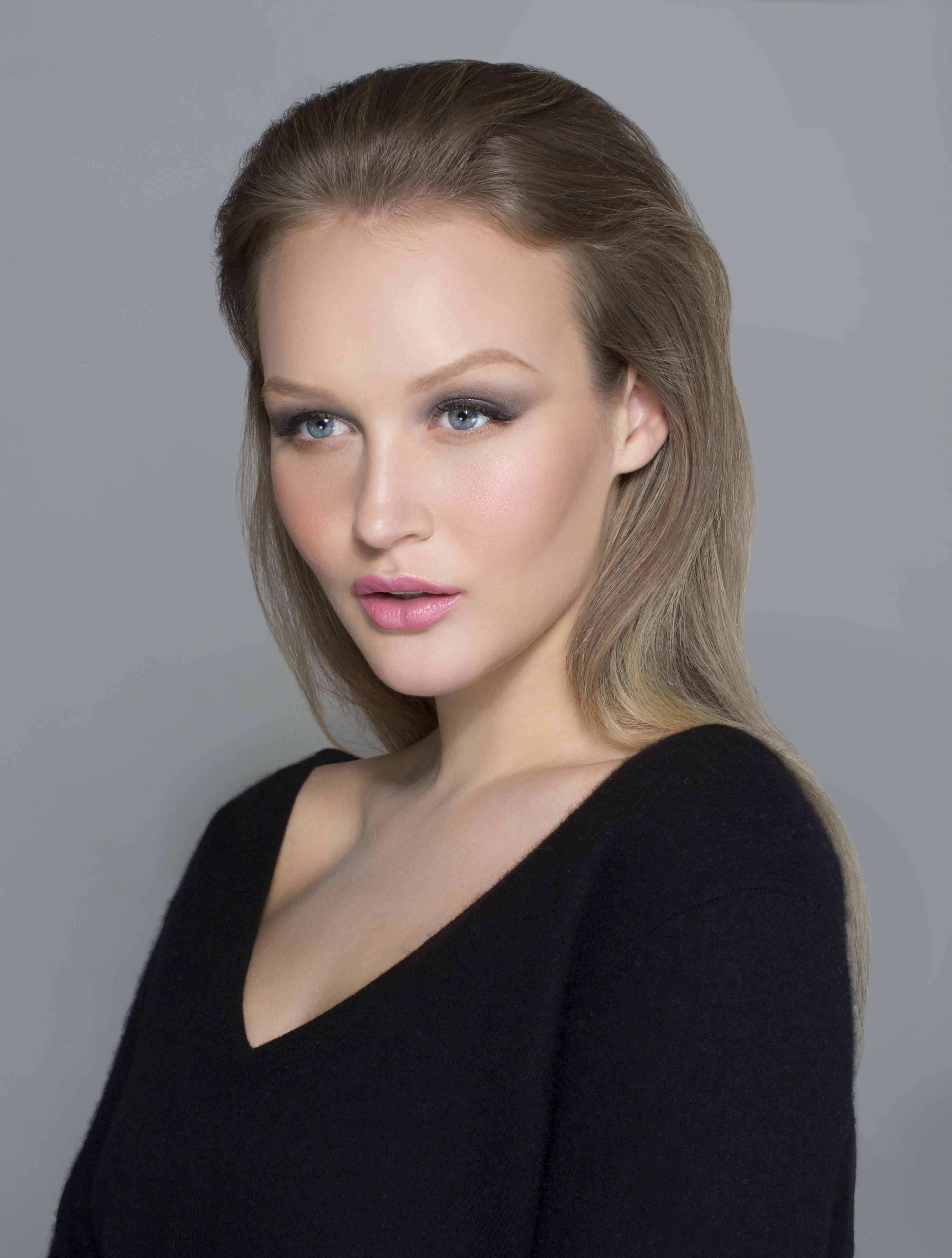 使用月光礦物眼影塗抹於眼睫毛上方,再使用魅金紫丁香礦物眼影於眼窩線處向外暈染開,接下來使用雙頭眼影線刷混合黑魔女礦物眼影及水或保濕定妝噴霧,作為眼線液勾勒上眼線並延伸向眼尾外勾出貓眼眼線。最後使用使用雙頭眉睫刷沾取雙效眉粉餅勾畫出自然眉型,再使用眉膏定型。