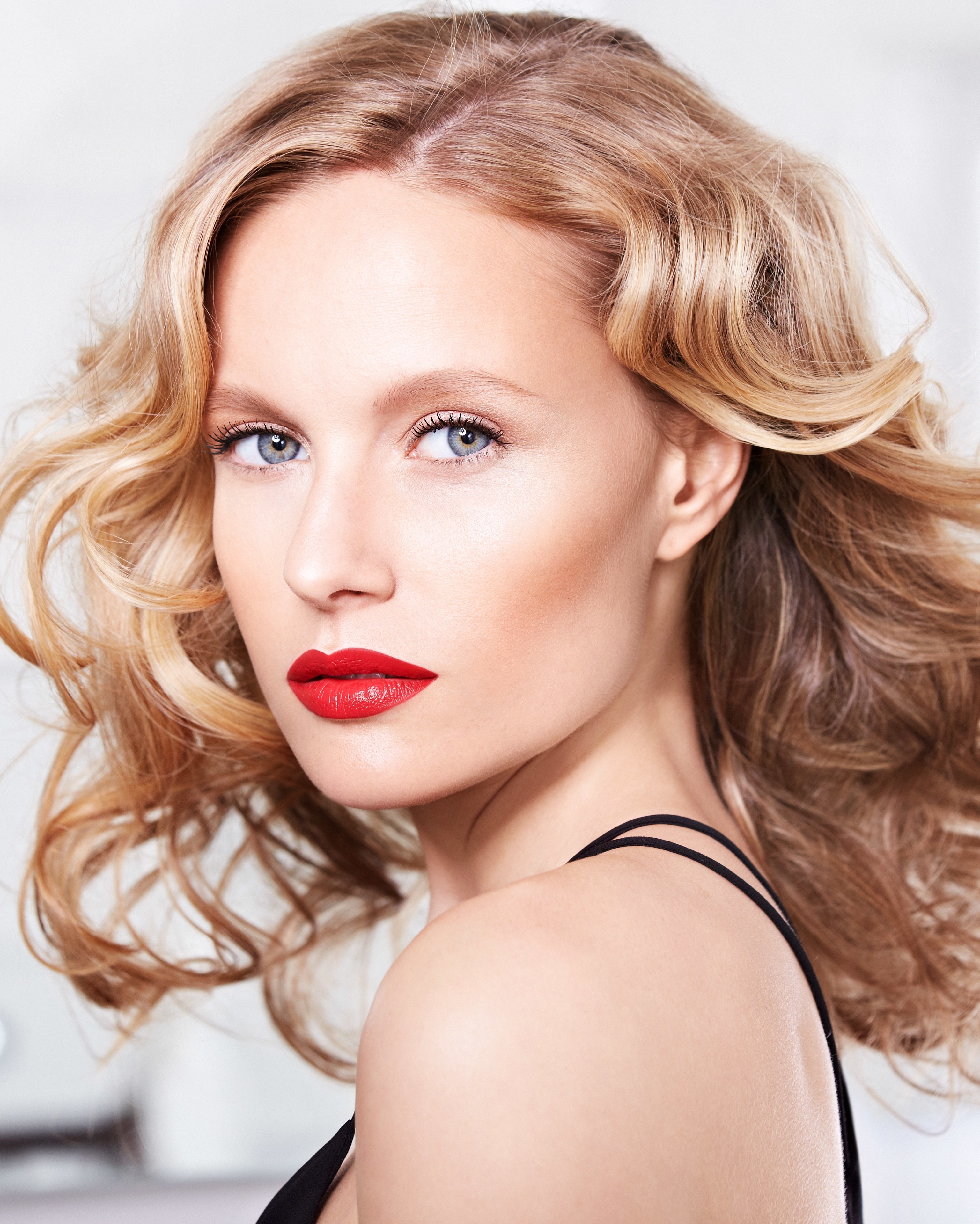 先以少量礦物提亮粉星塵於唇峰處打亮,再使用天然潤唇膏火焰紅,以唇膏尖端處先將唇線勾畫出,再將唇色塗滿,或使用唇刷上色更自然飽滿。