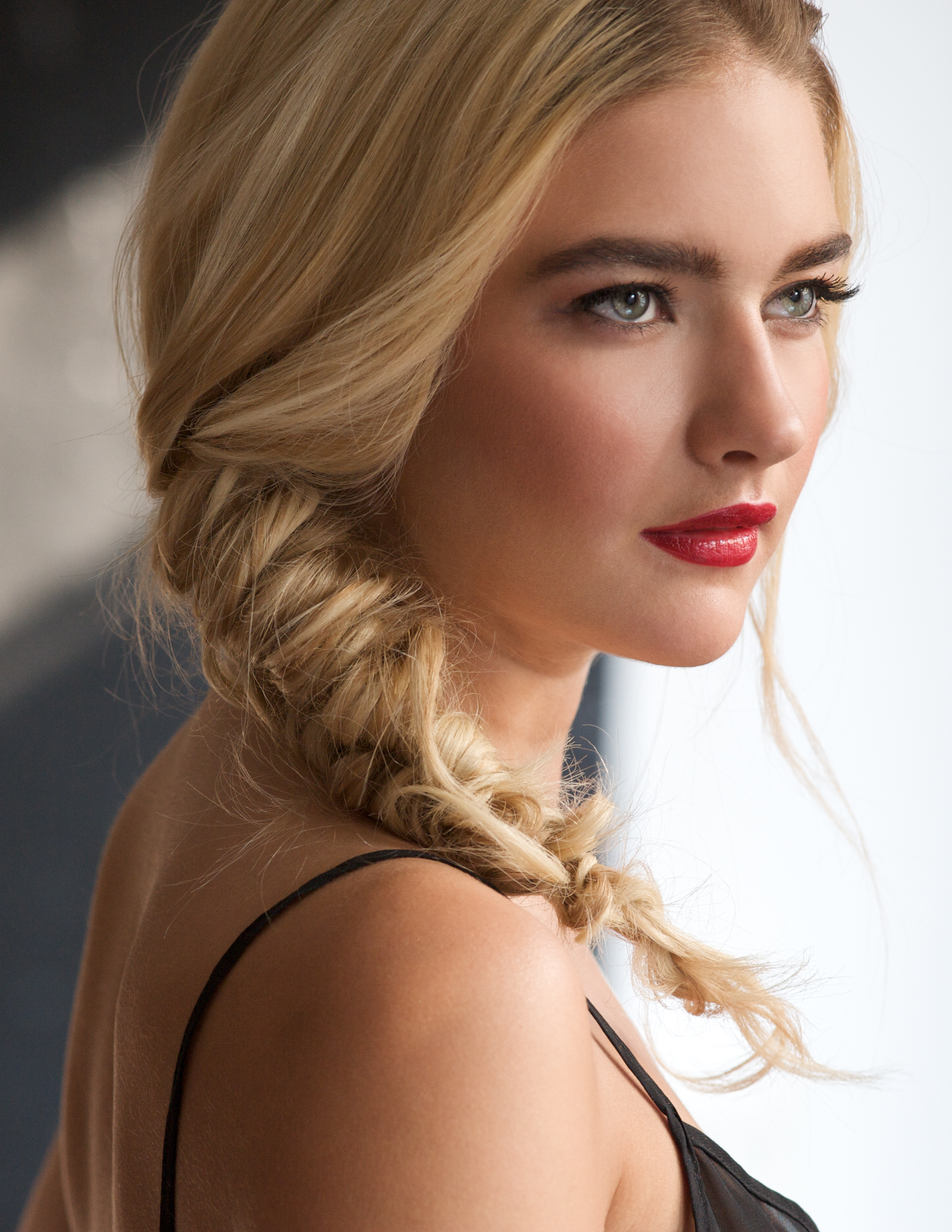 使用天然眼線筆黑色勾勒眼線,再刷上兩層天然睫毛膏,使眼睛明亮有神。